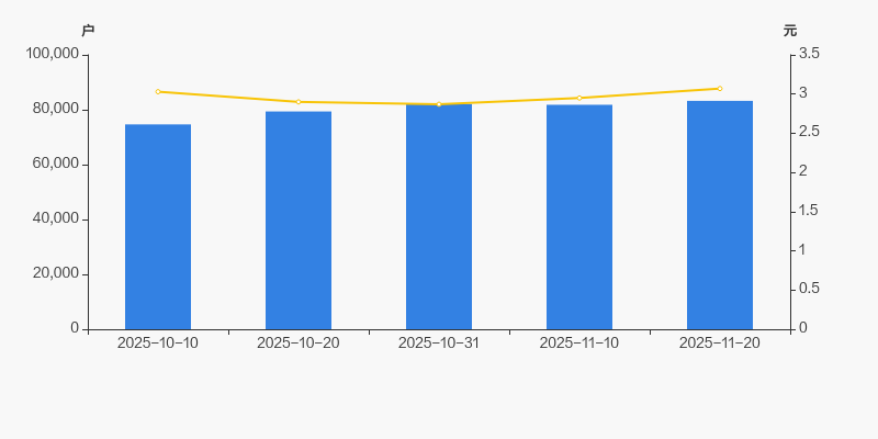 2025年10月10日至今,公司股东户数显著增长,区间涨幅为11.48%。2025年10月10日至2025年11月20日区间股价上涨1.32%。