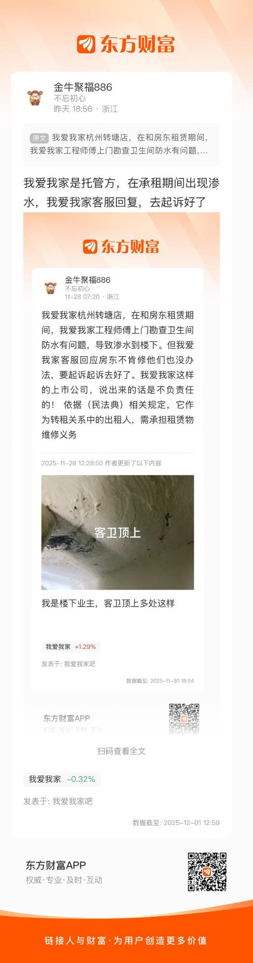 我爱我家是托管方,在承租期间出现渗水,我爱我家客服回复,去起诉好了