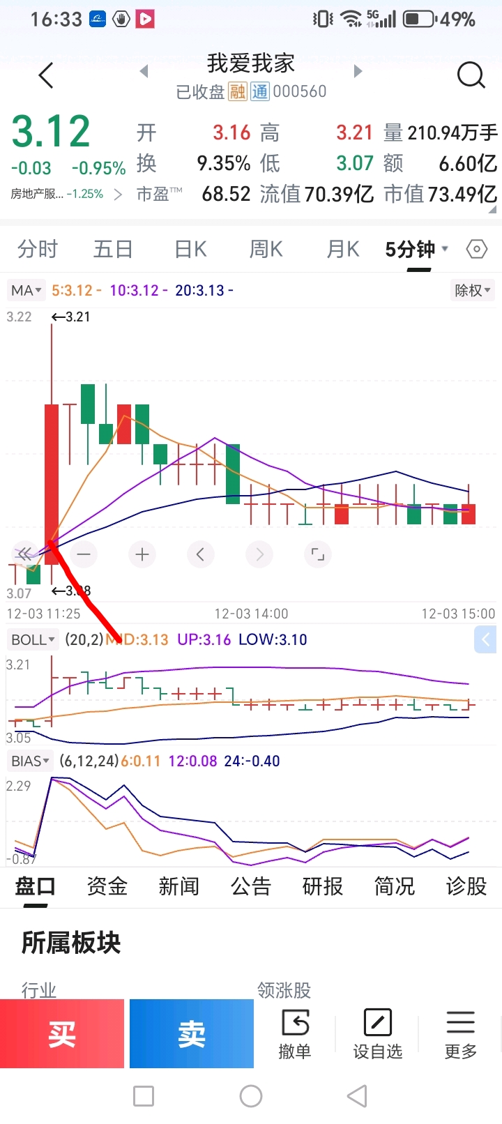 $我爱我家(SZ000560)$ 今天主力逆板块吸筹