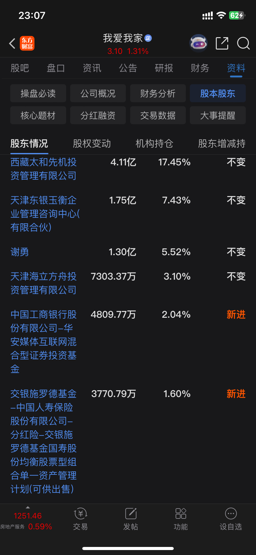 $我爱我家(SZ000560)$ 保险公司投资股票风险因子下调了,也就是保险公司要加大股票的投资,利好有保险公司持股的股票,我爱我家就有保险公司持股