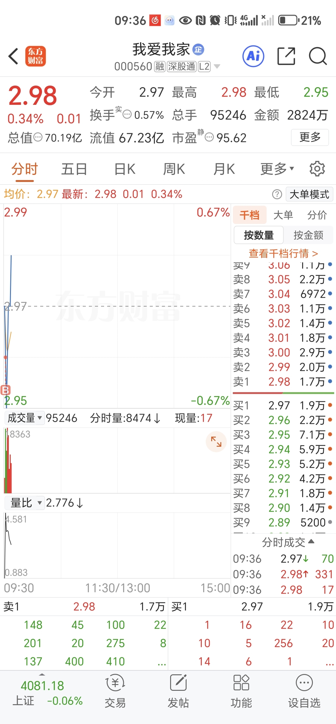 $我爱我家(SZ000560)$ 快拉上去我T一把