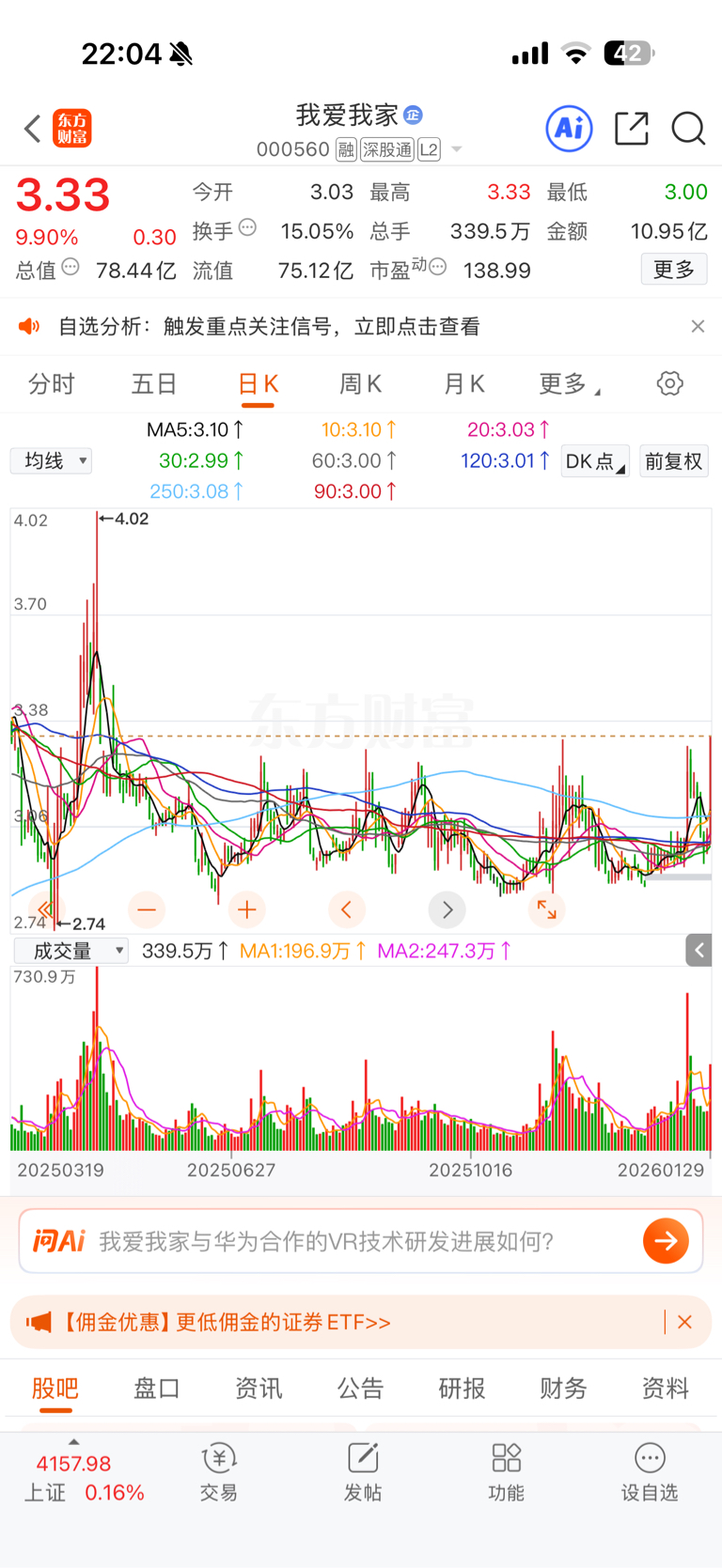 $我爱我家(SZ000560)$ 不错不错,先来五个板子