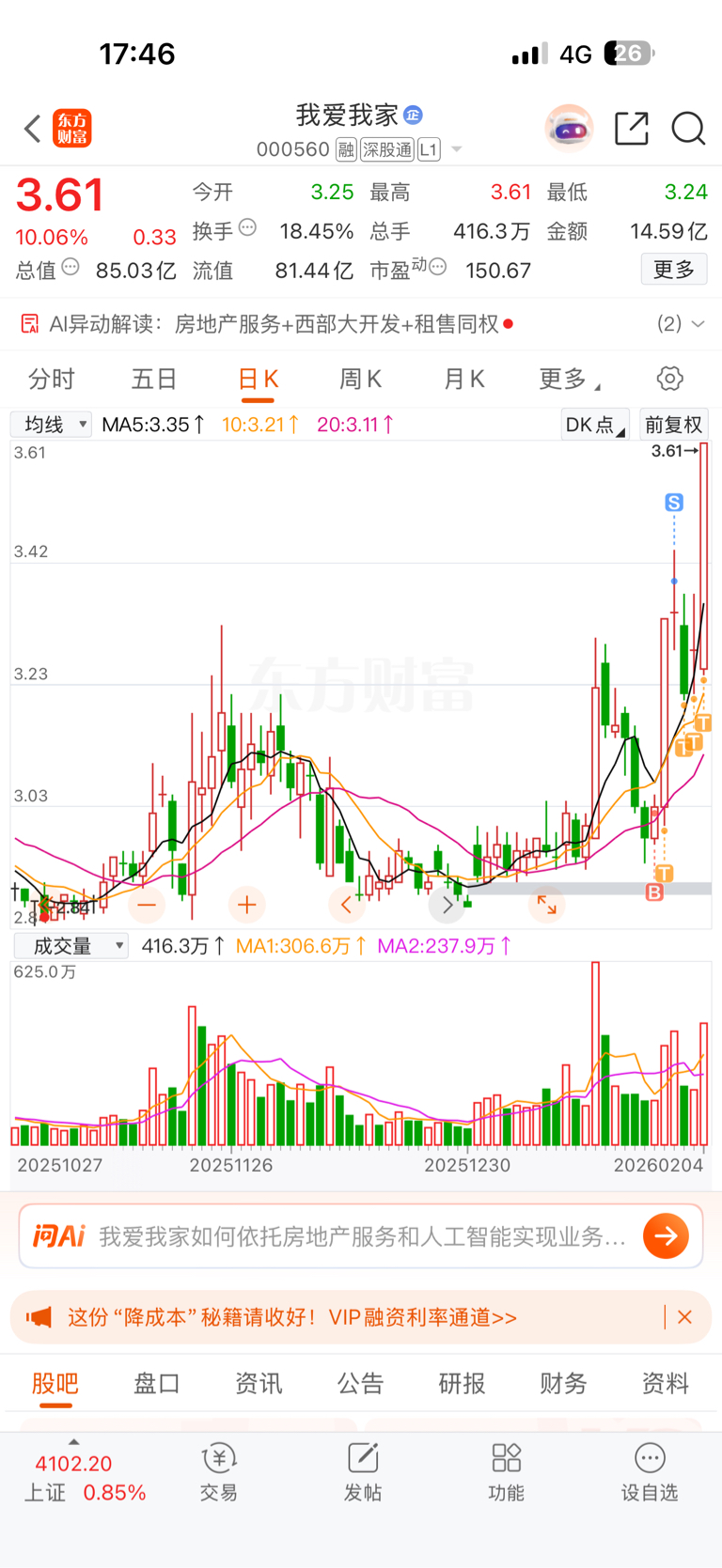 $我爱我家(SZ000560)$ 相信我爱神