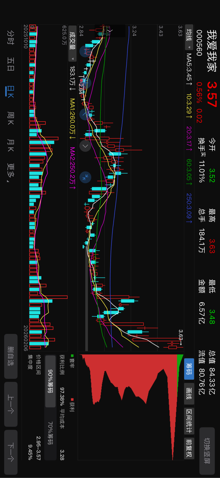 $我爱我家(SZ000560)$ 筹码完成一次转移