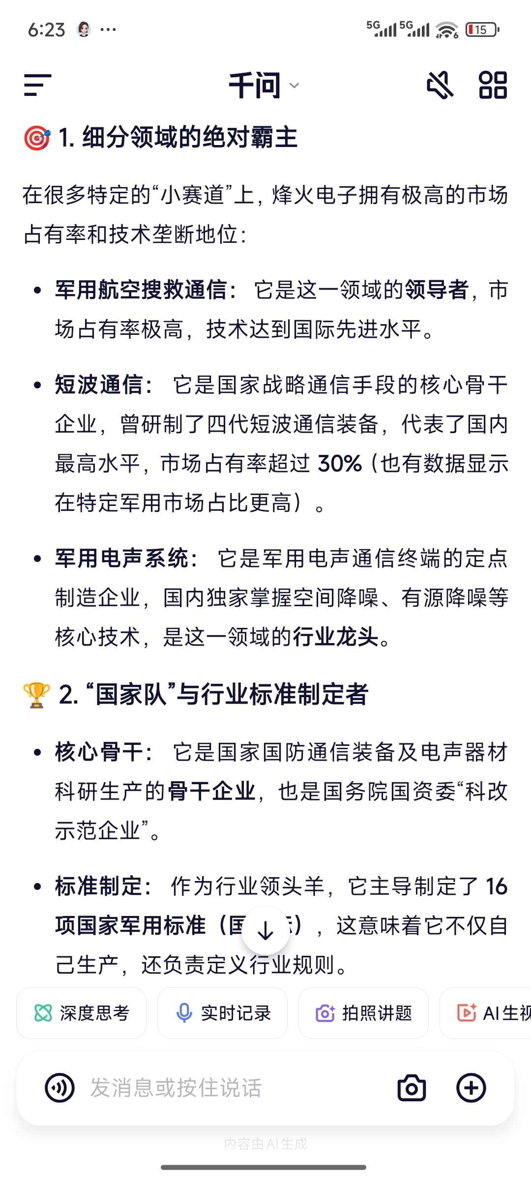 $烽火电子(SZ000561)$ 千问说你是小霸王啊,股价怎么这样