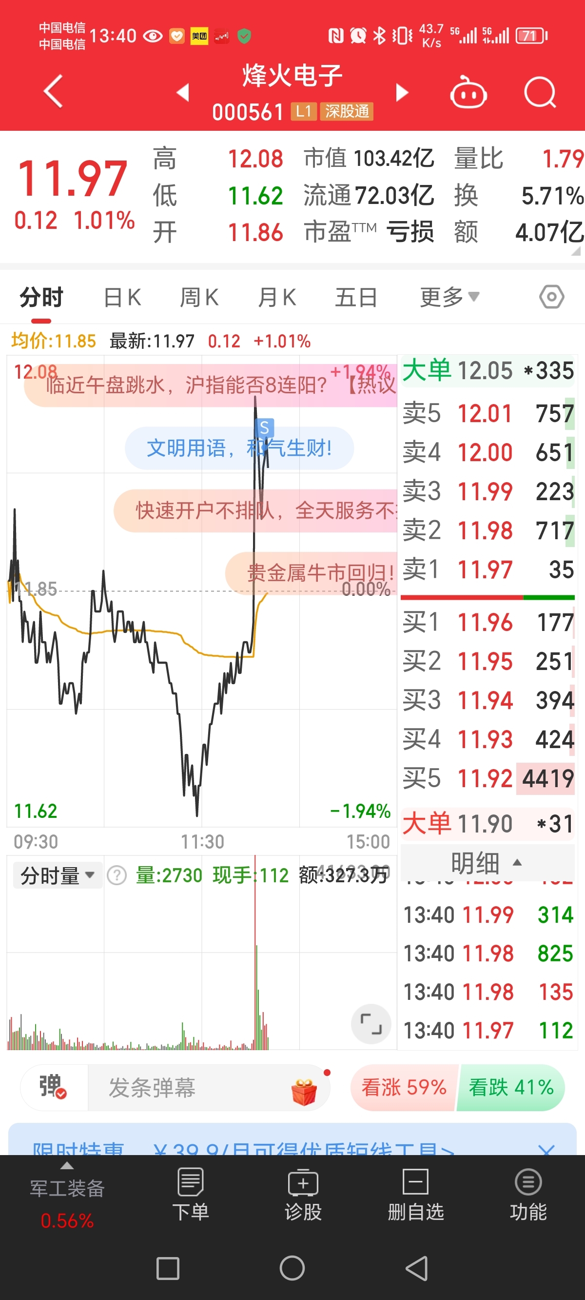 $烽火电子(SZ000561)$ 12跑了,下来了再接回来