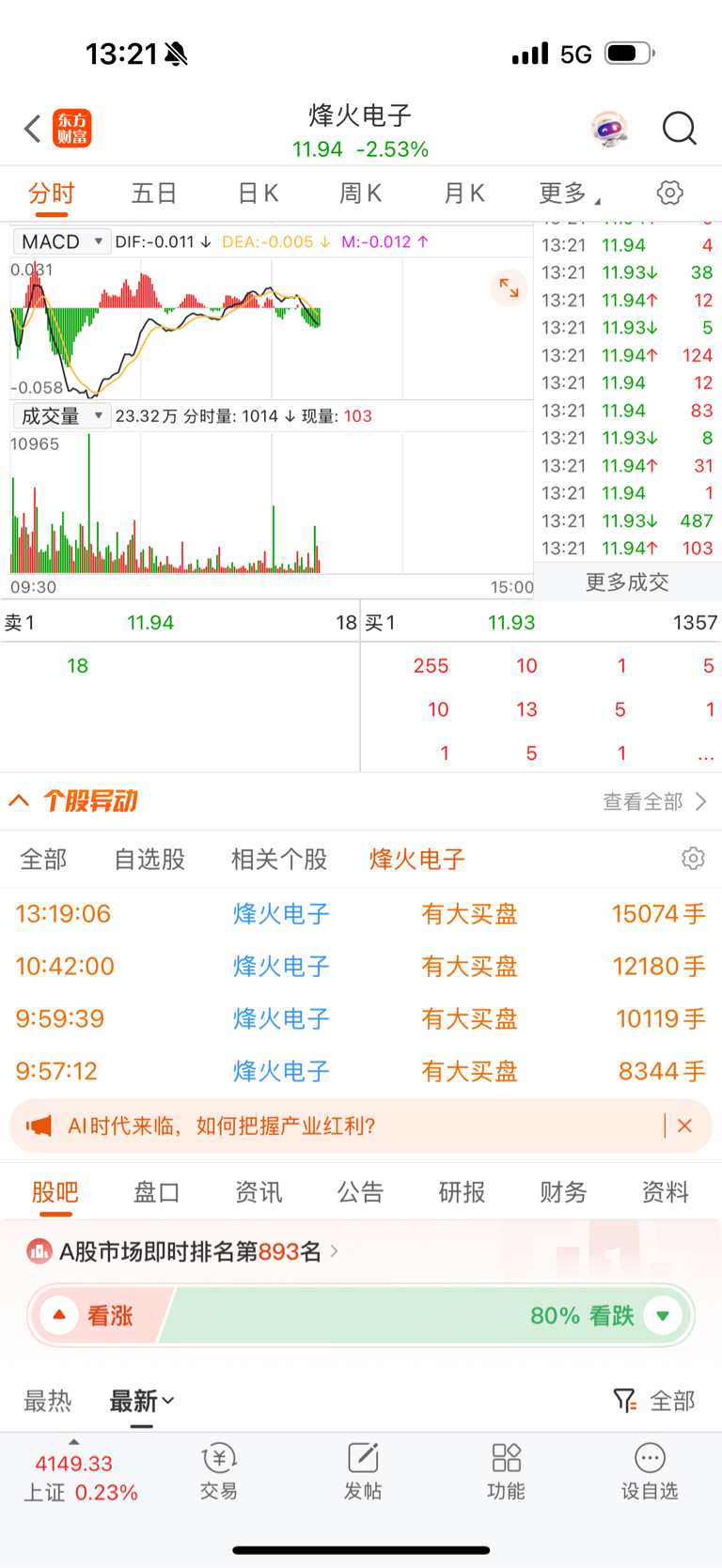 $烽火电子(SZ000561)$ 这是主力的买单,骗人的