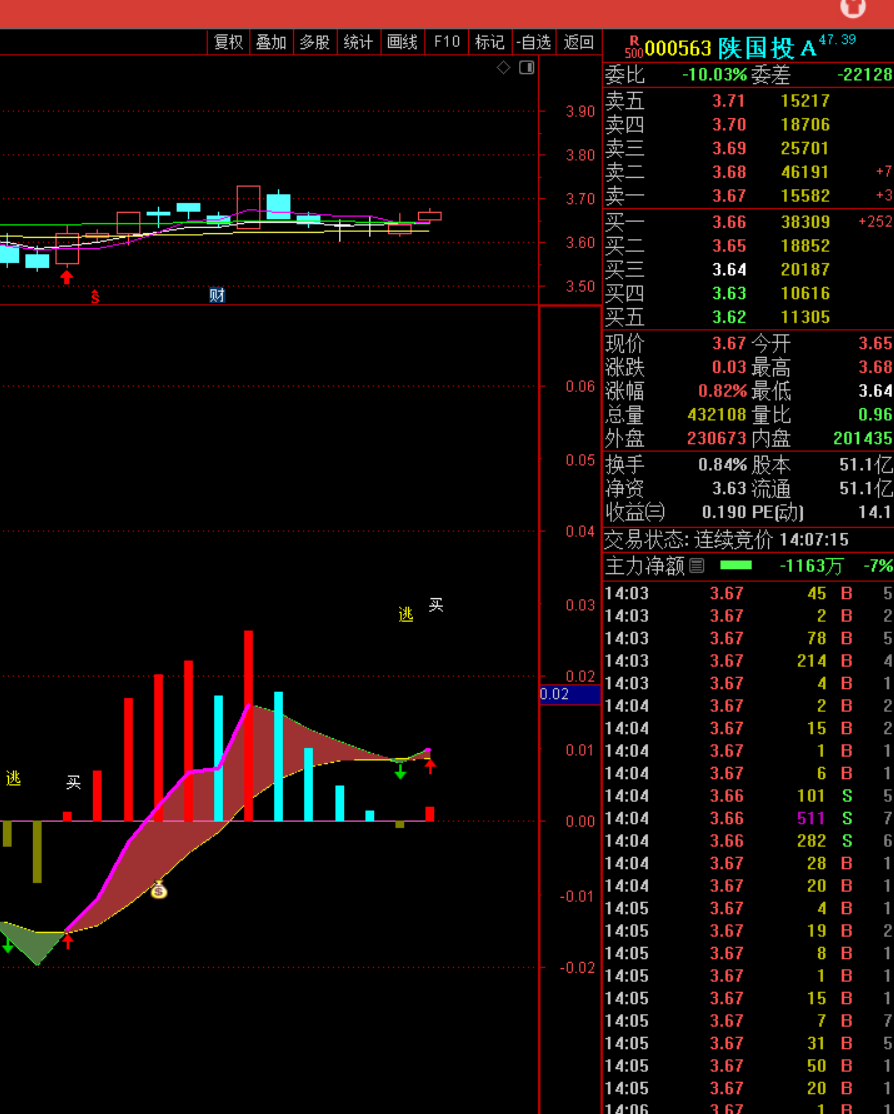 今天突破3.65元最佳买入点位;黄线3.63元为最强支撑位;进入多头上涨趋势;大胆加仓买入吧.......盈亏自负不负法律责任
