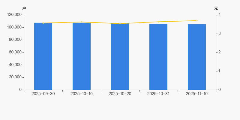 自2025年10月10日以来,公司股东户数连续3期下降,截至目前减幅为2.11%。2025年10月10日至2025年11月10日区间股价上涨1.93%。