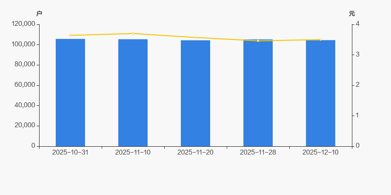 2025年10月31日至今,公司股东户数有所下降,区间跌幅为1.14%。2025年10月31日至2025年12月10日区间股价下降3.85%。