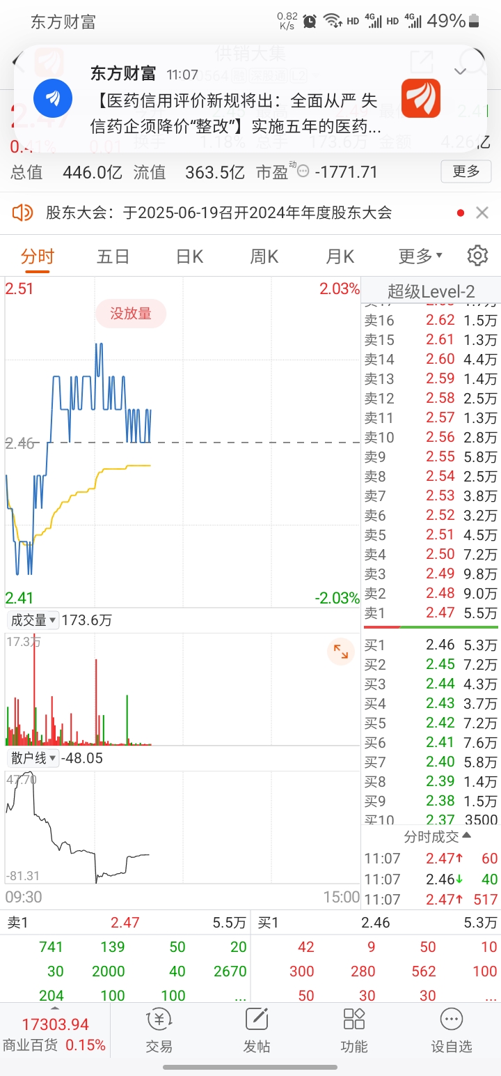 $供销大集(SZ000564)$ 没量,还有压单,近期大概率不会有大动作,有的话也是往下