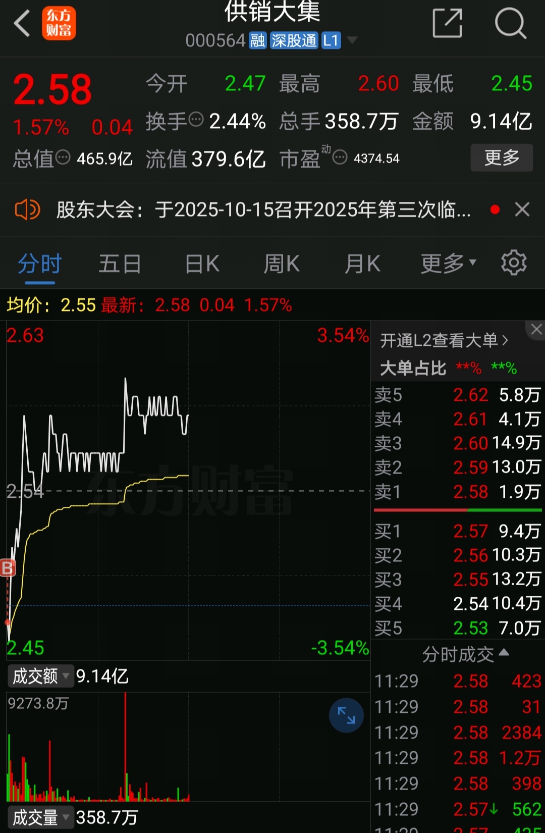 $供销大集(SZ000564)$ 今作完毕,不再操作