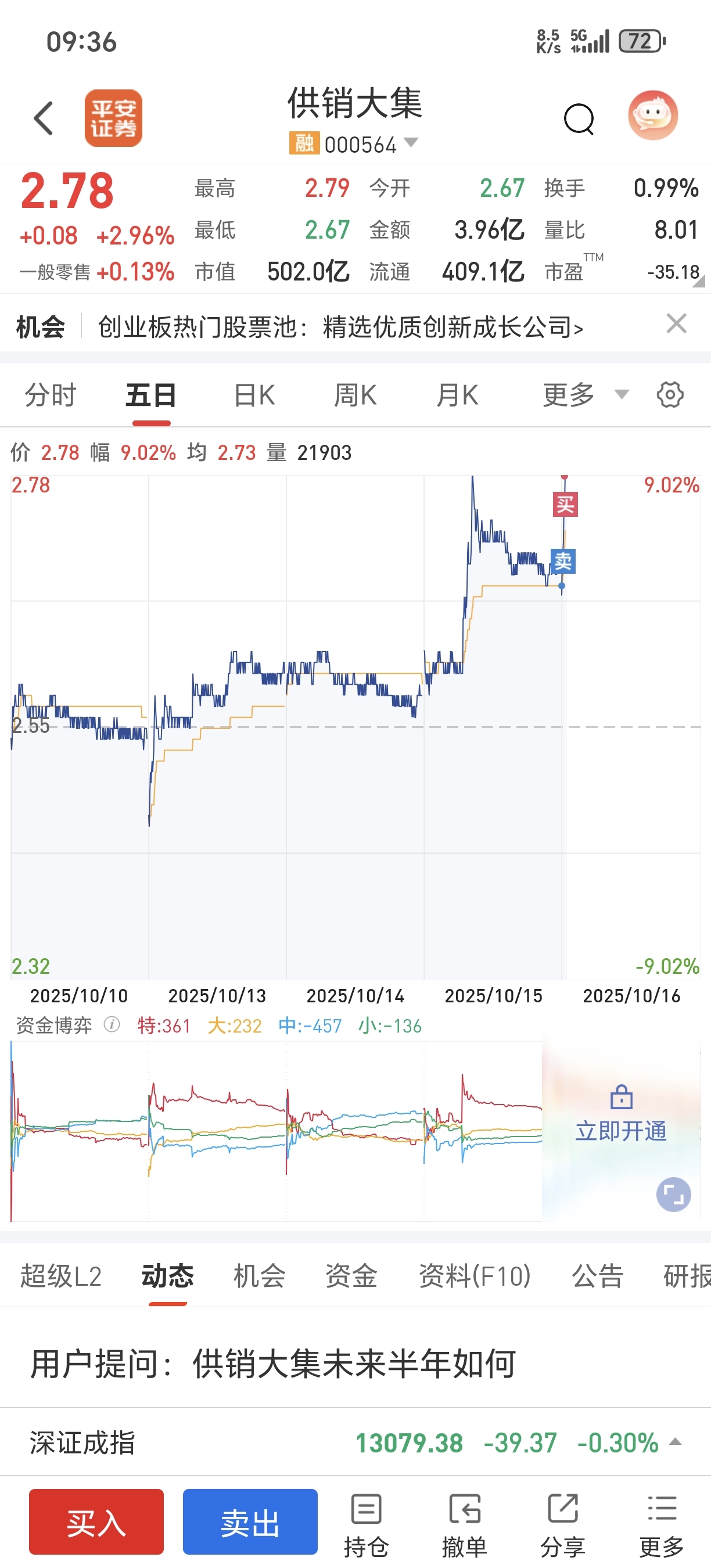 $供销大集(SZ000564)$ 你仙人一下 几个月不动一下 动一次就这样 在也不动啦