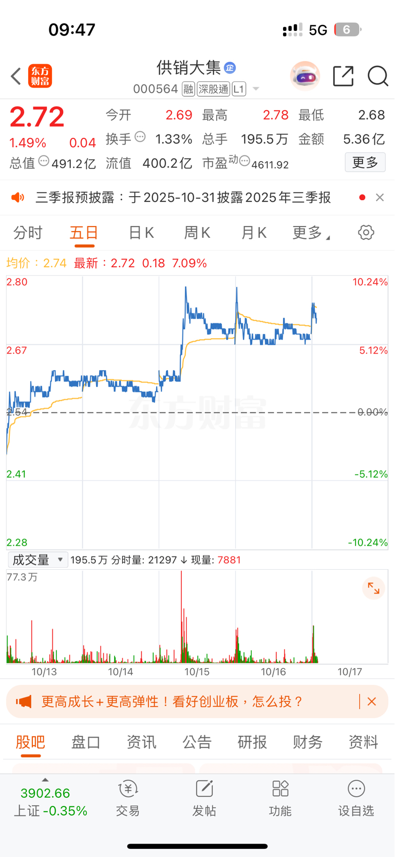 $供销大集(SZ000564)$ 下班今天不看了