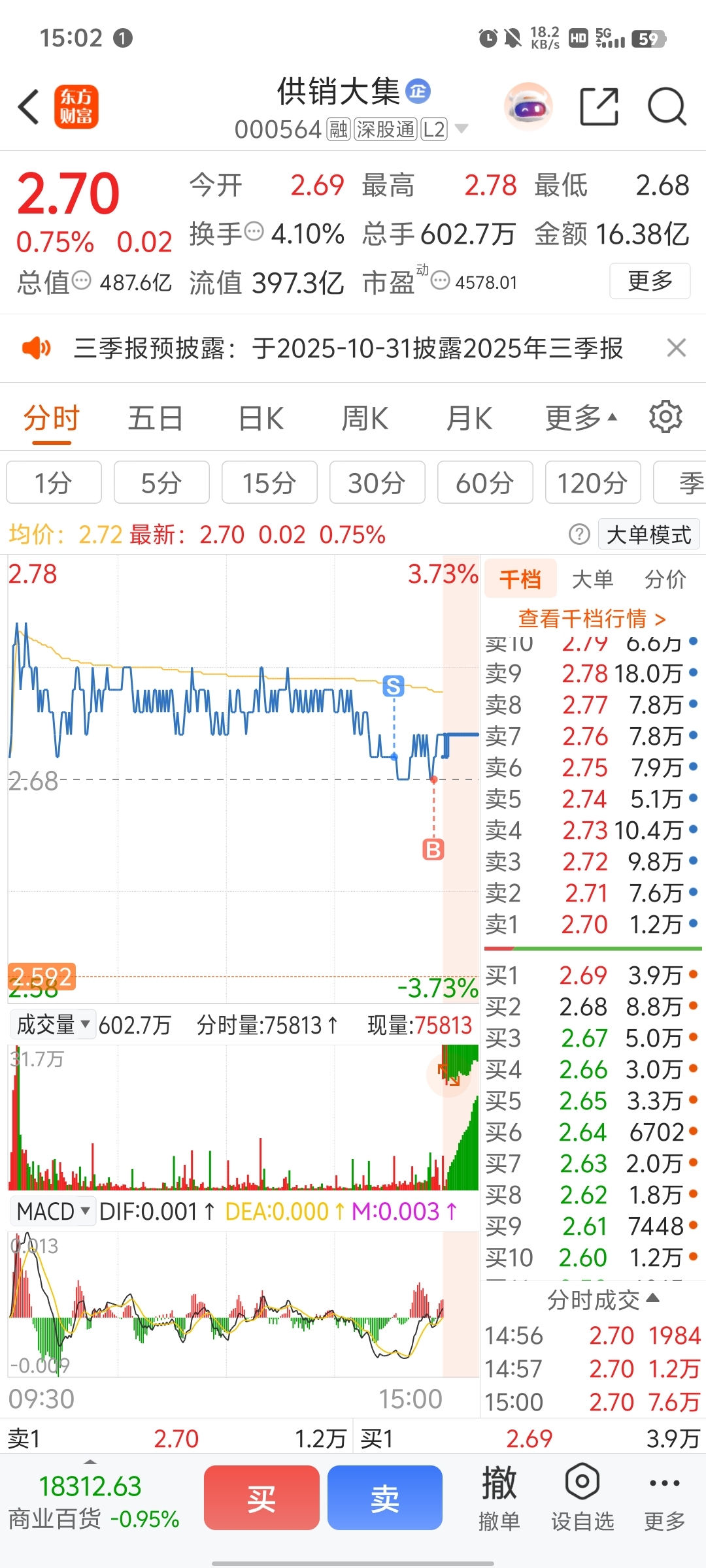 $供销大集(SZ000564)$ 只能说真极限