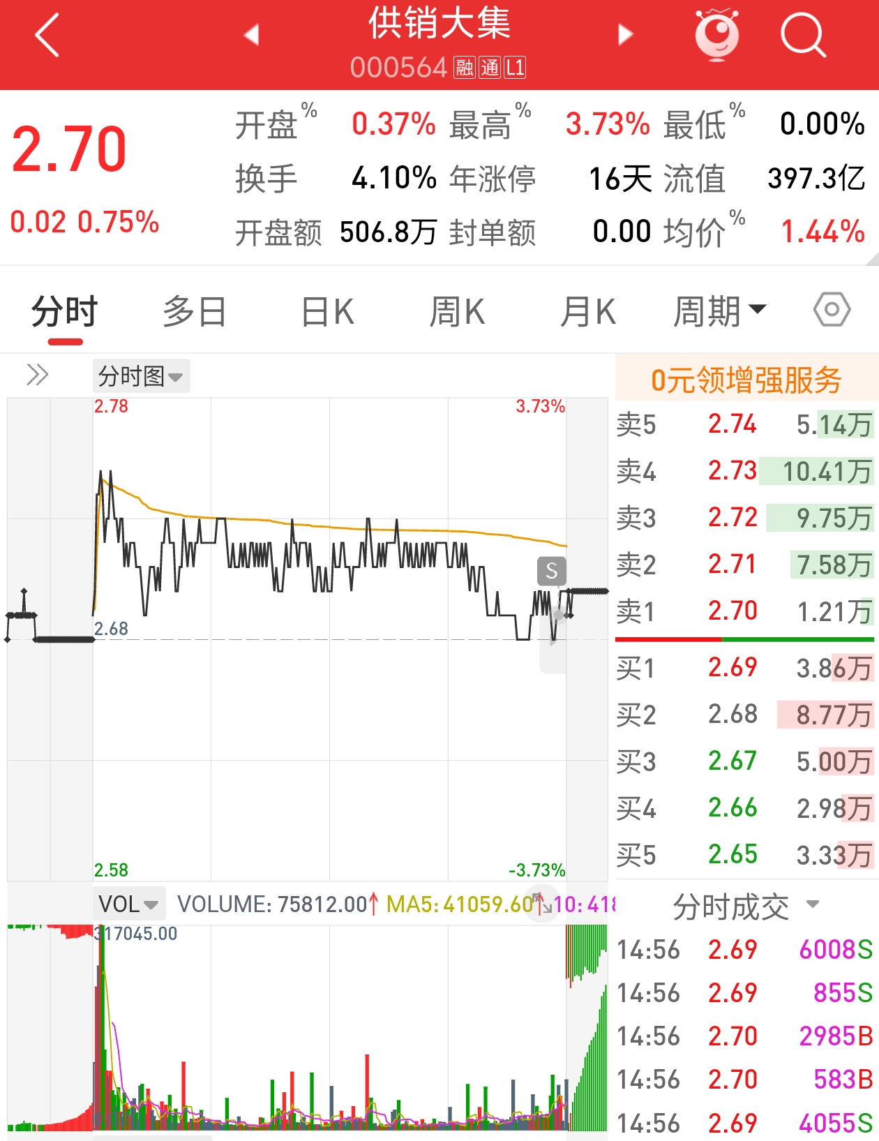 $供销大集(SZ000564)$ 我已经很格局了,跑在最低点,三炷香我不玩了