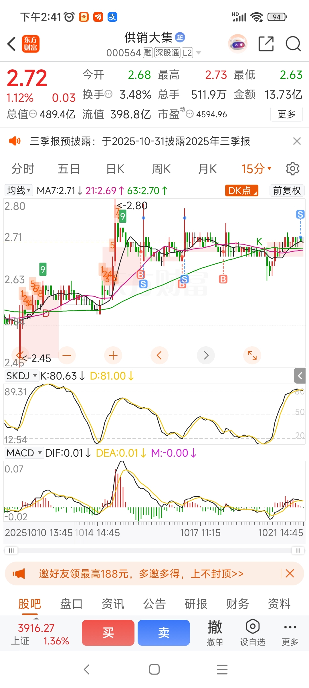 $供销大集(SZ000564)$ 太磨人了!撤退了!
