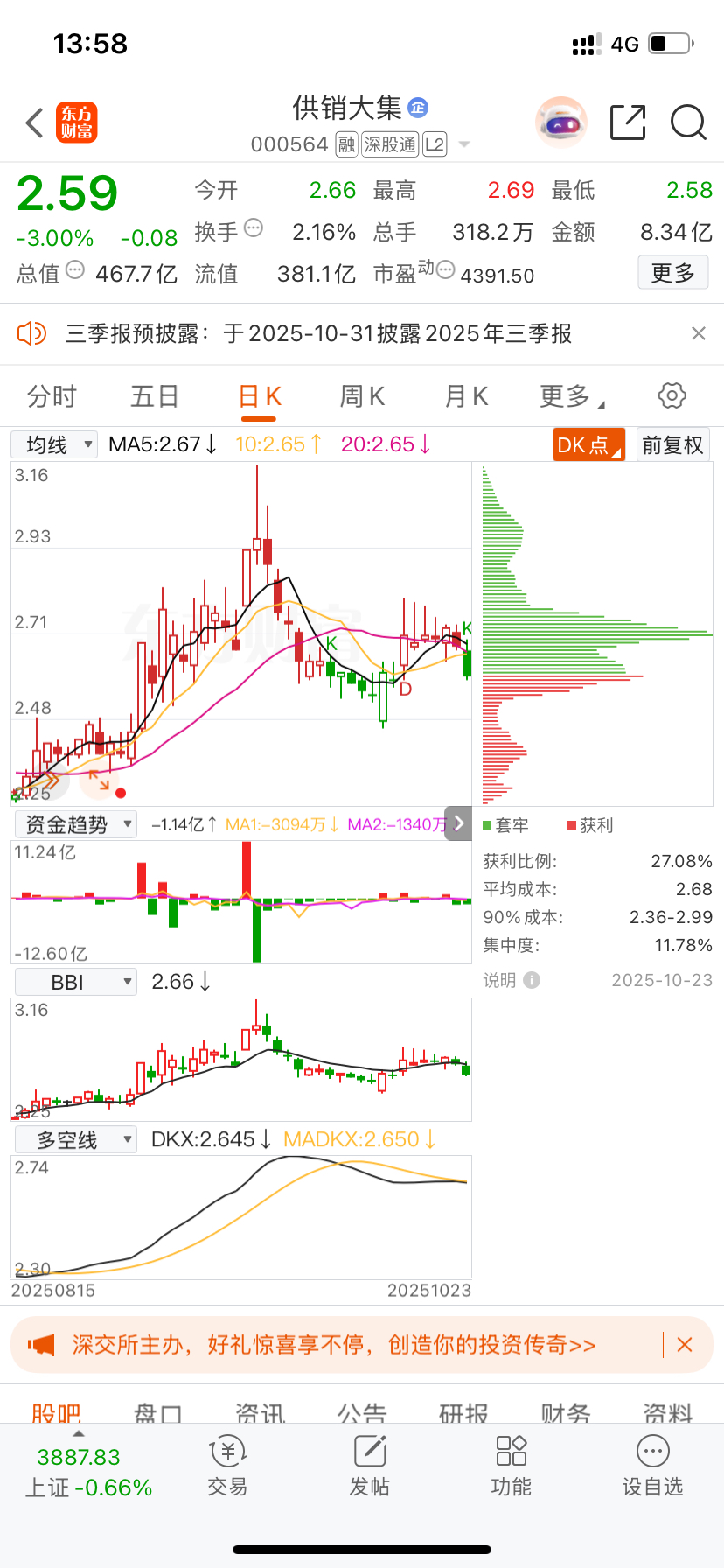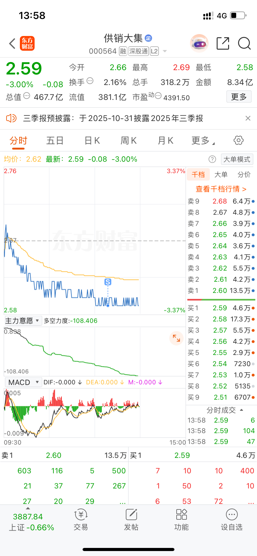 K线显示了!清仓了!割肉了!去抄底别的股!别的D线显示反弹也比它强!今天大跌!明