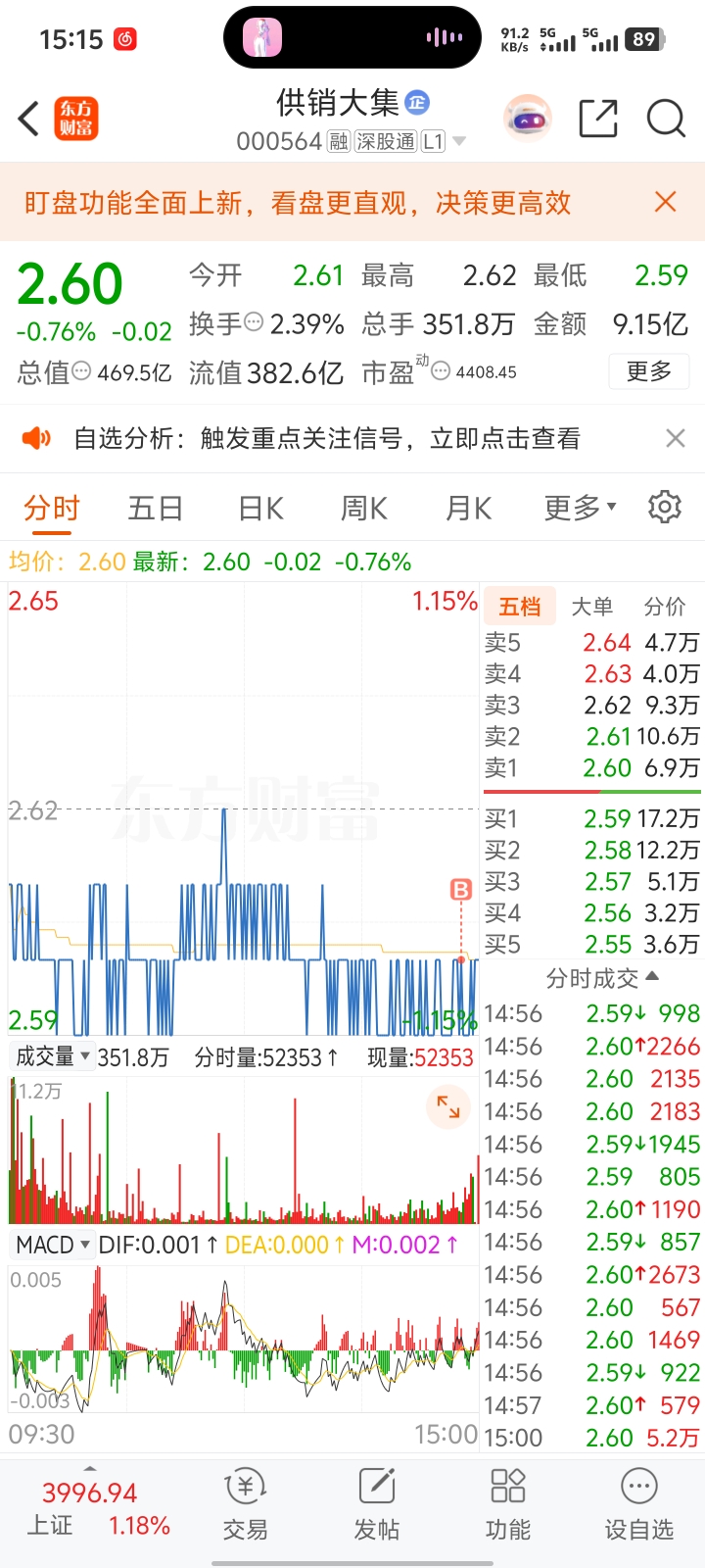 $供销大集(SZ000564)$ 2.6我又进来了