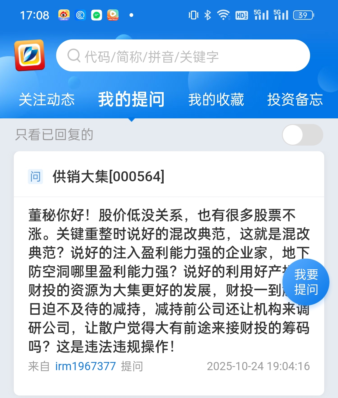 $供销大集(SZ000564)$ 上次那个兄弟在股吧发的东西,我帮你问大集 ba 董秘了,已经申请通过了