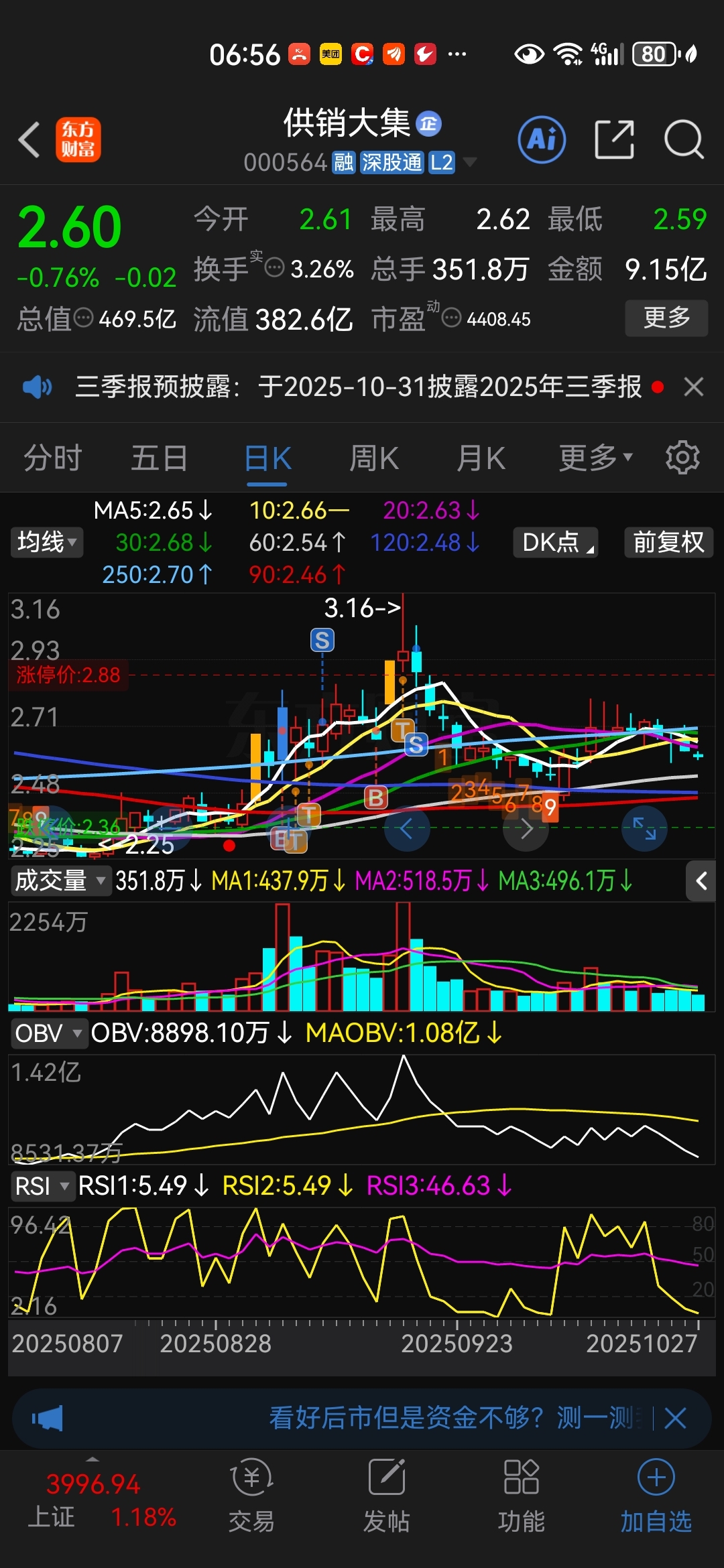 $供销大集(SZ000564)$ 不要觉得我没有发言权,我最有了,因为我是主力和散户的克星