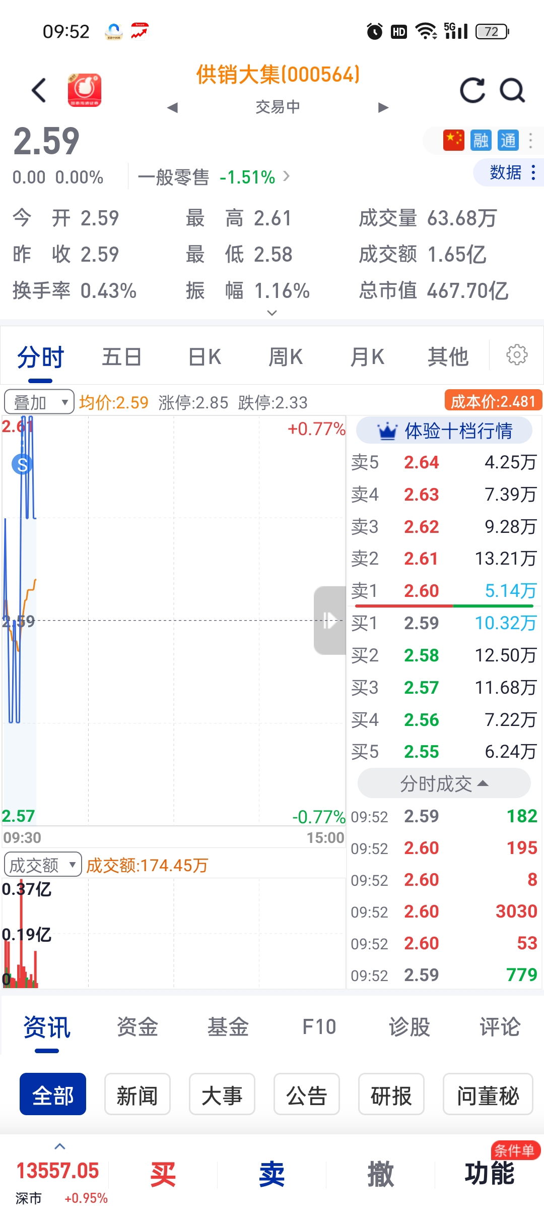$供销大集(SZ000564)$ 就该别希望太大,卖一点降低风险