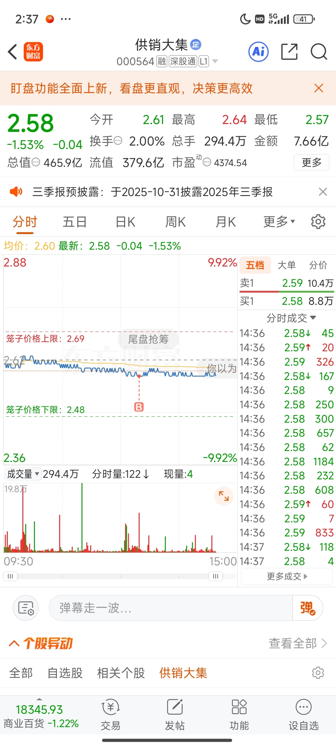 $供销大集(SZ000564)$ 好像补早了,明天能到2.49吗