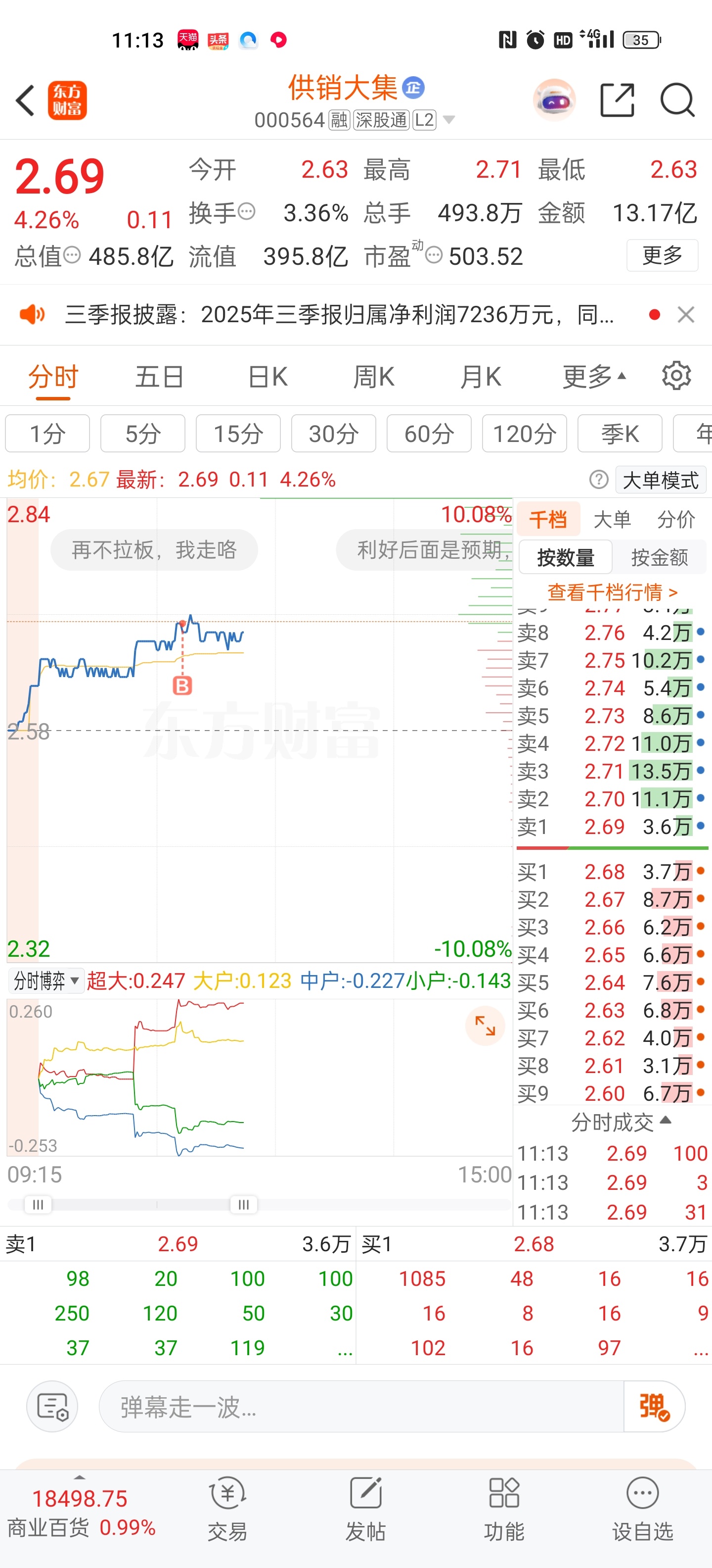$供销大集(SZ000564)$  兄弟们我2.7一进就压死了