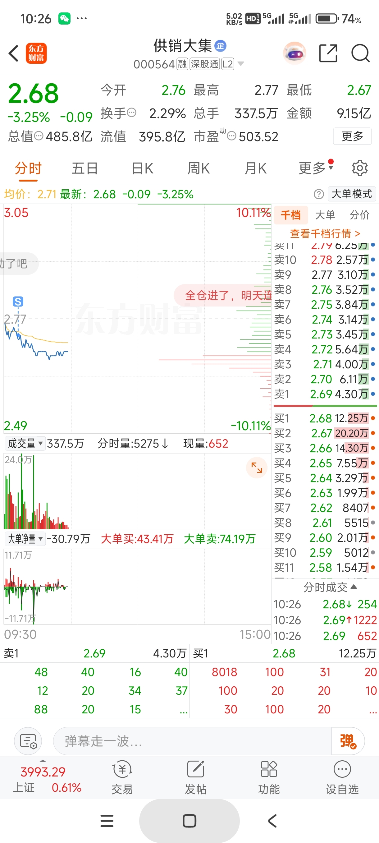 $供销大集(SZ000564)$ 每次买都输。幸好这次卖的快。