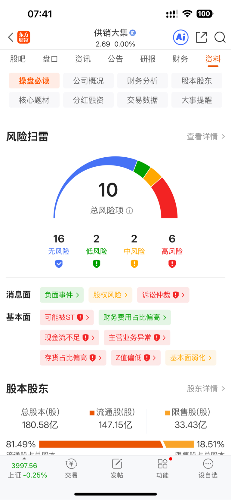 $供销大集(SZ000564)$ 这么多风险,还有可能被带帽,大家赶紧跑吧!