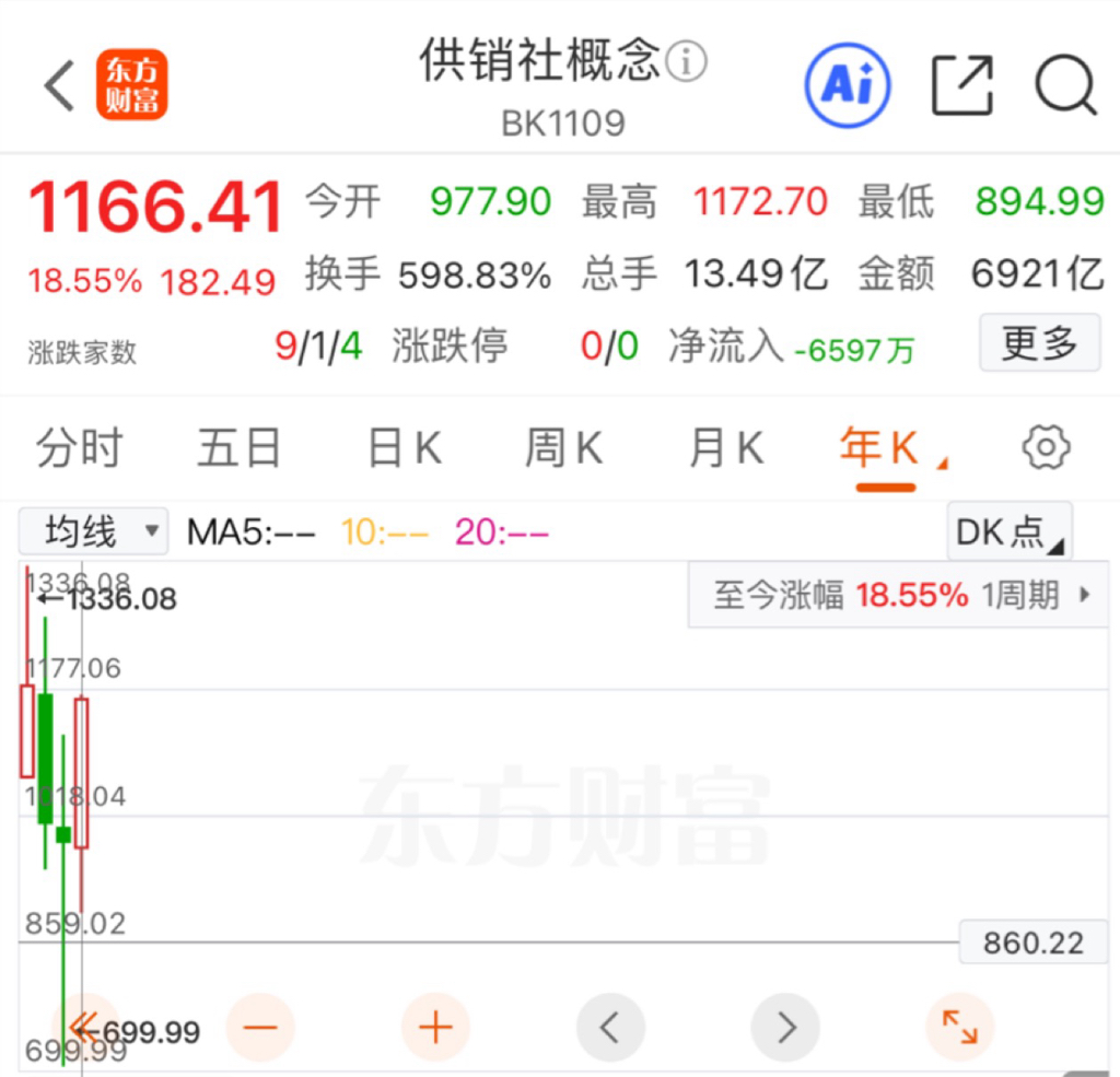 供销社概念今年都涨18%,大家加把劲,把大集从供销社概念里剔除了,才是真牛逼