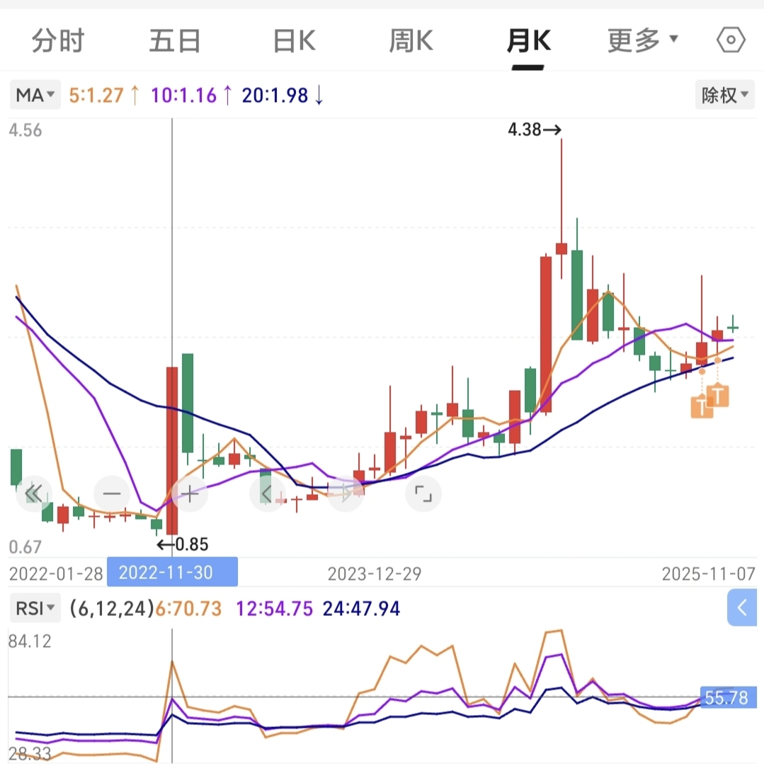 $供销大集(SZ000564)$ 翻了下大集的月线,22年11月158%,24年11月70%,今年应该快了吧