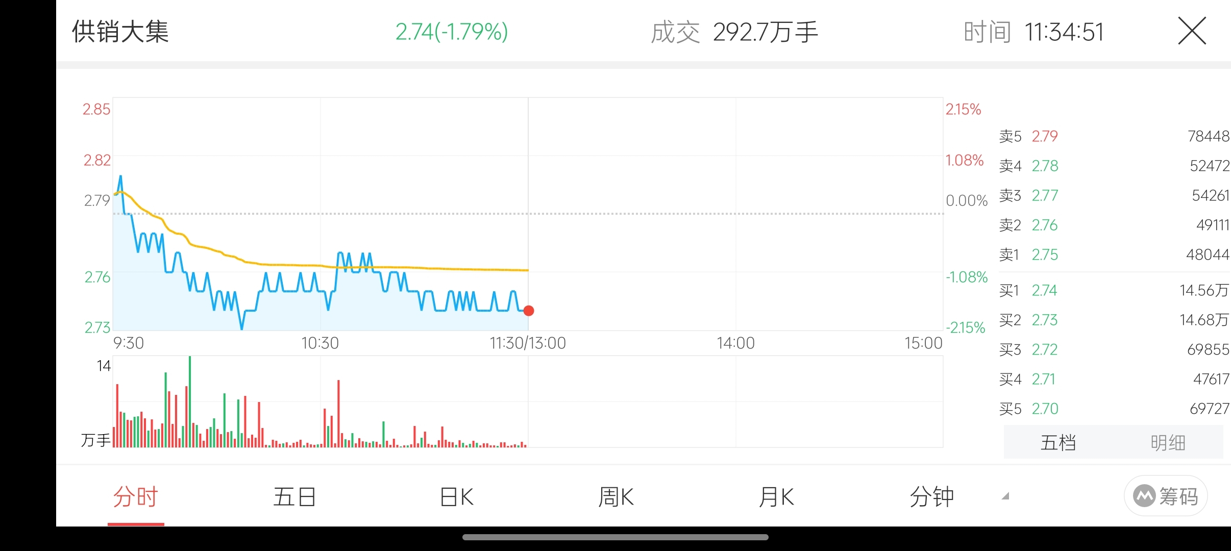 本来还指望今天他能冲一冲,冲破成本价就抛出去…入手的时候看的势头挺好的,长期均线