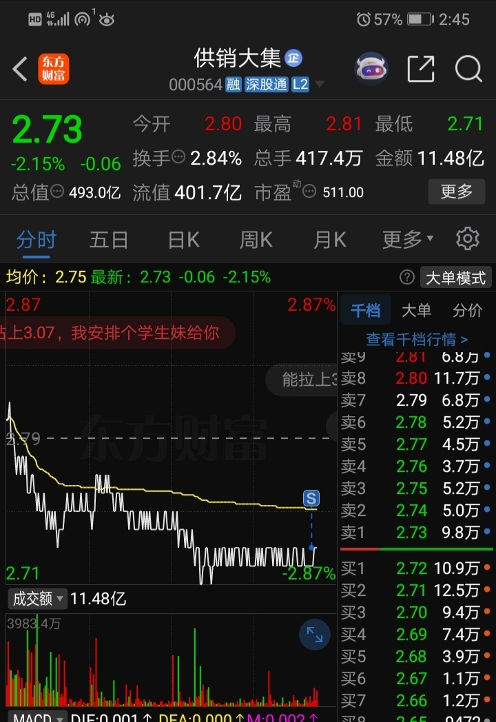 $供销大集(SZ000564)$ 你可以涨了!!真恶心到了我