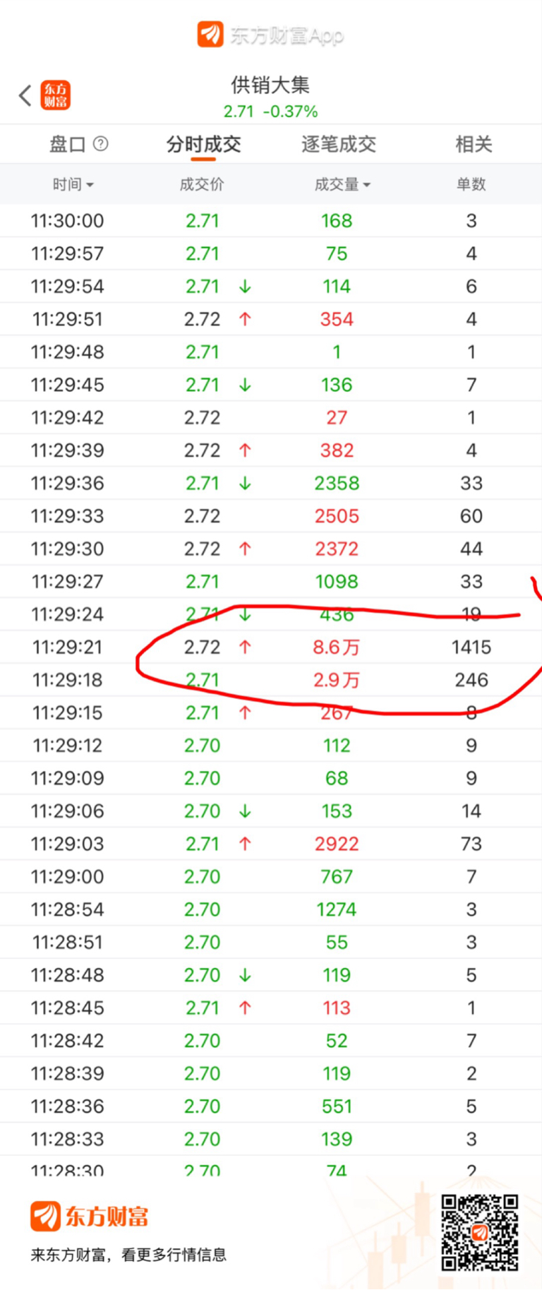 $供销大集(SZ000564)$ 不太明白71压了13万手,结果71吃了2.9万,72吃了8.6万。13万的压单就没了。这是在进货骗筹码吗?