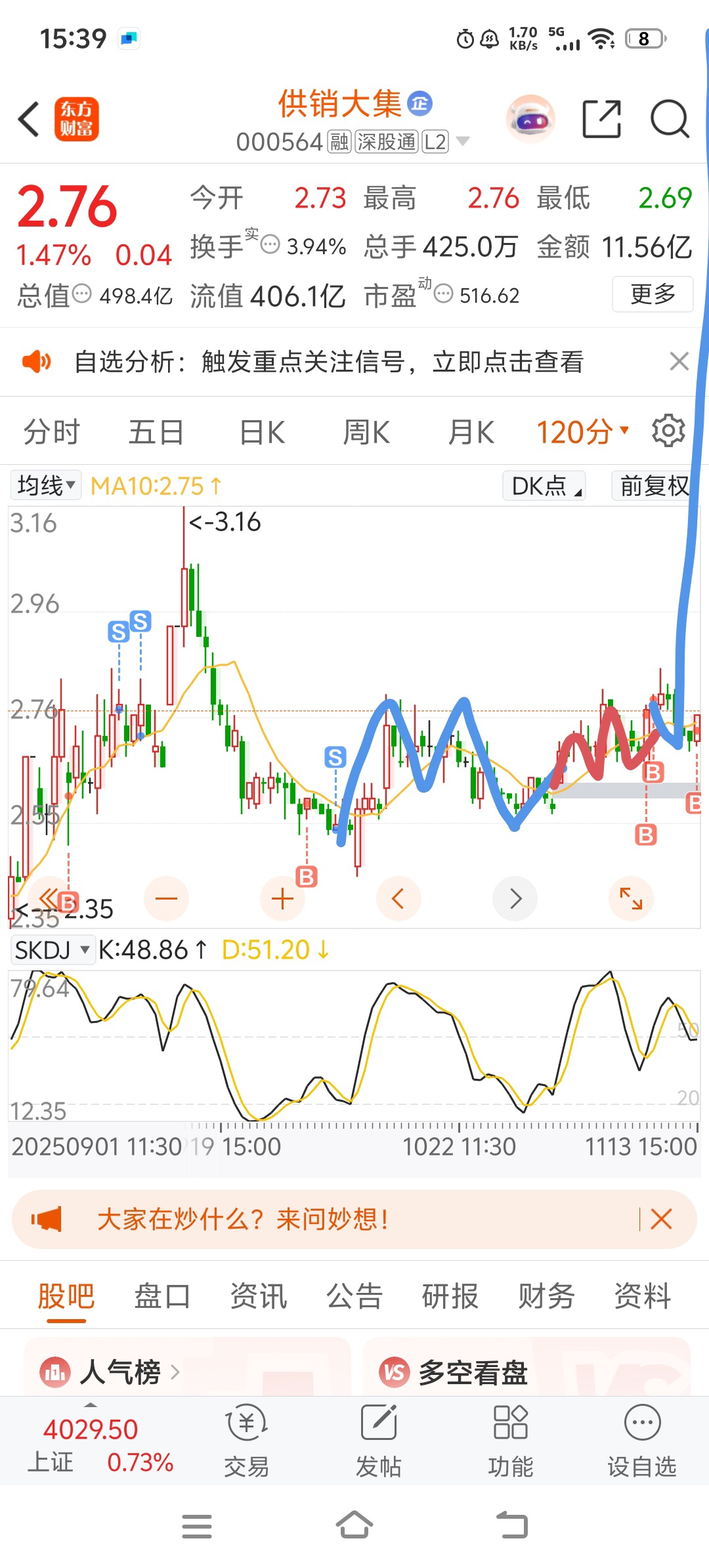 $供销大集(SZ000564)$ 7浪蓄势待发,随时突破涨停,目标价5.77