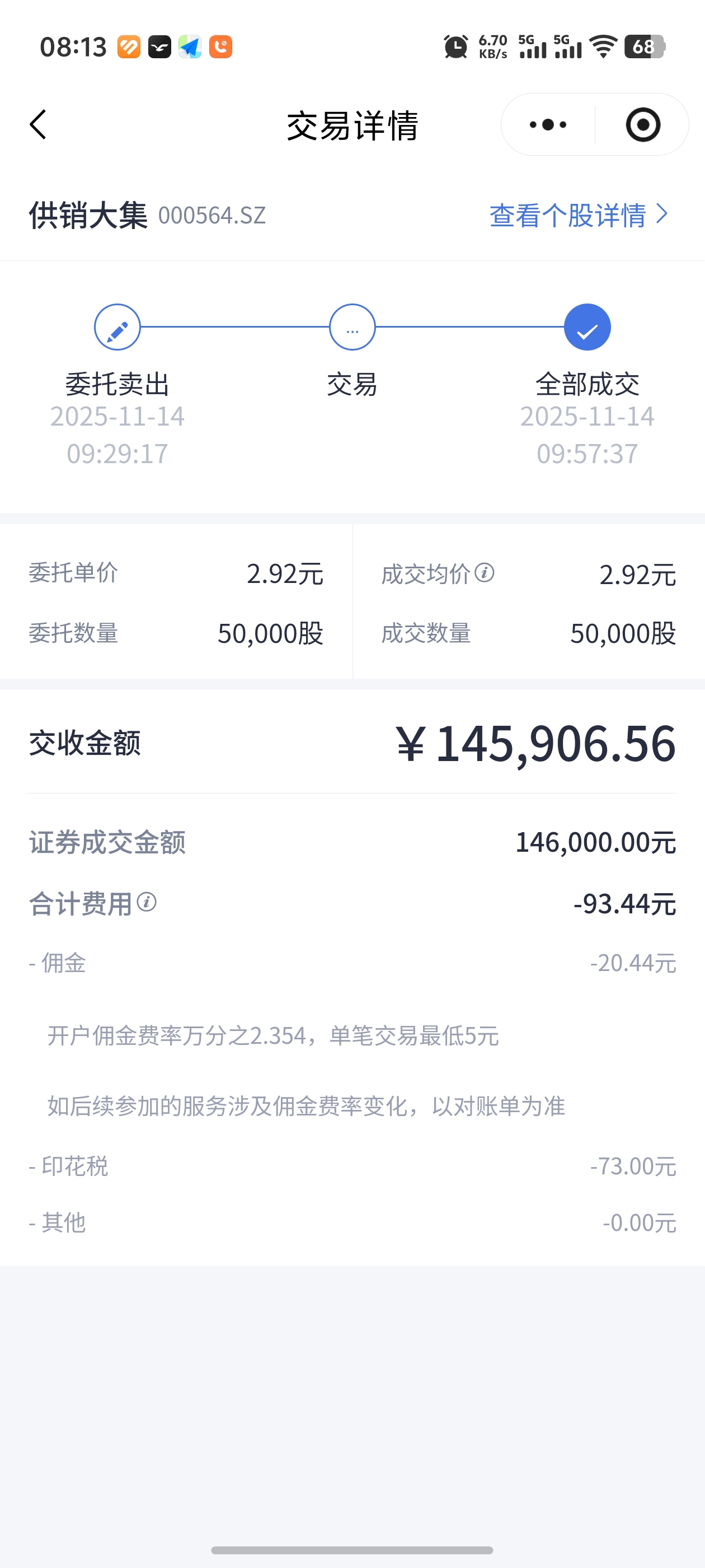 周四看到2.92既然到了先走一半,一是怕卖飞,二也是希望还能回调到2.77,希望