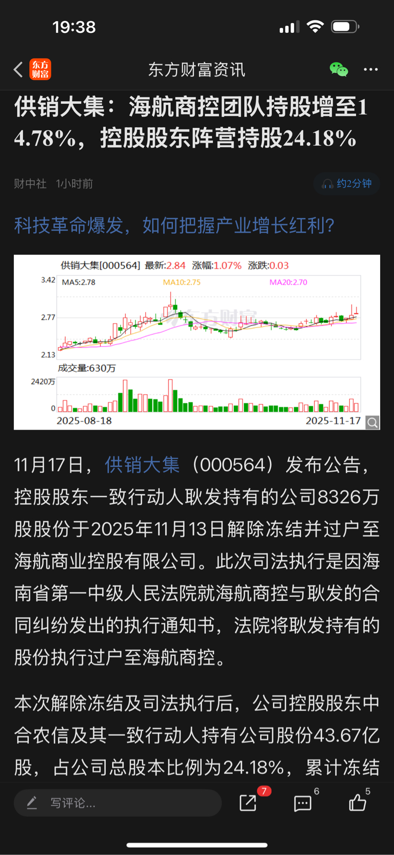 $供销大集(SZ000564)$ 公司的理解是海航增持,你们怎么看