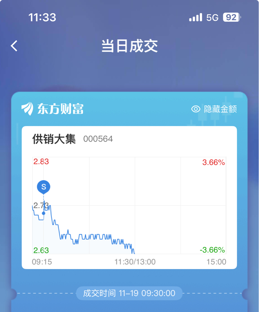 $供销大集(SZ000564)$ 开盘下班,这都杀不出恐慌盘,要调整一段时间了,短期玩性价比太低了