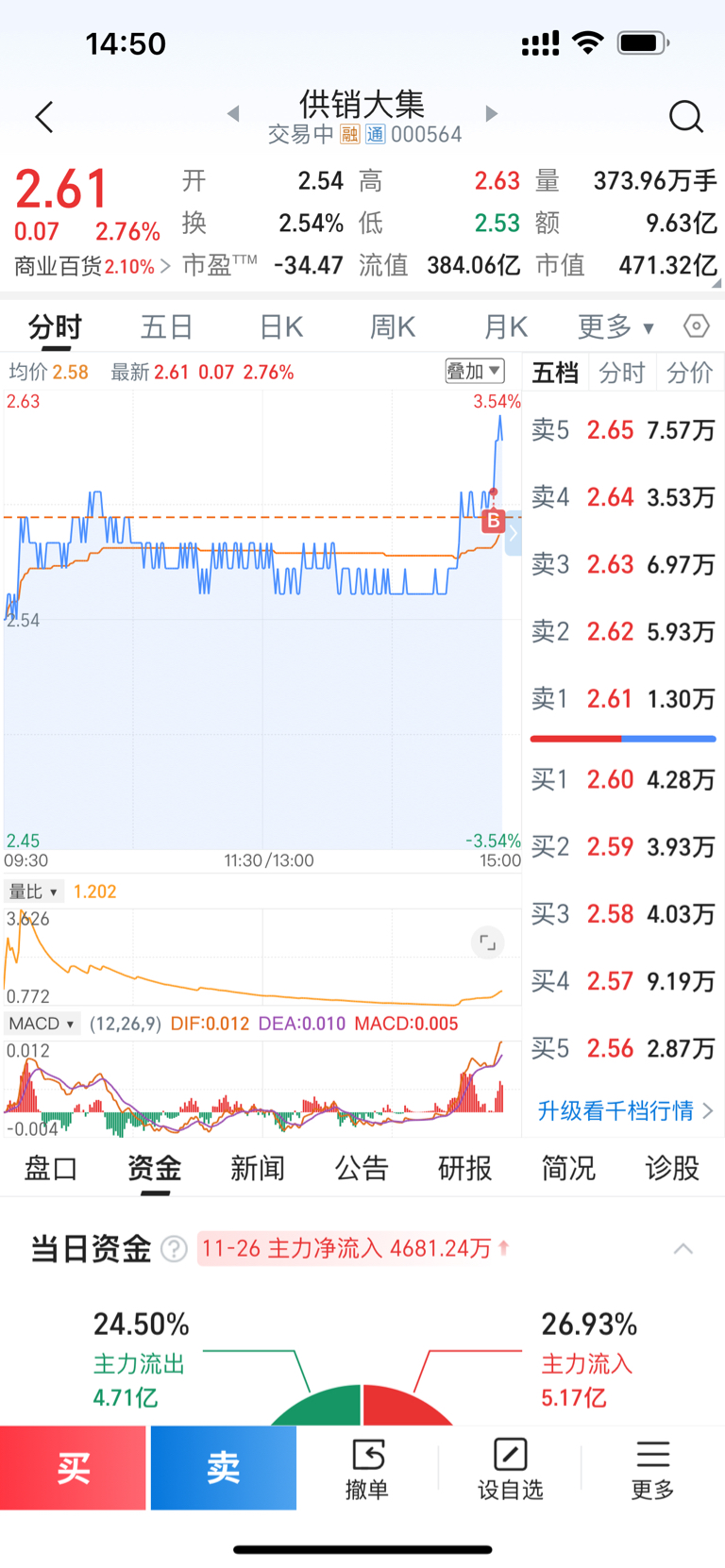 $供销大集(SZ000564)$ 尾盘买入了