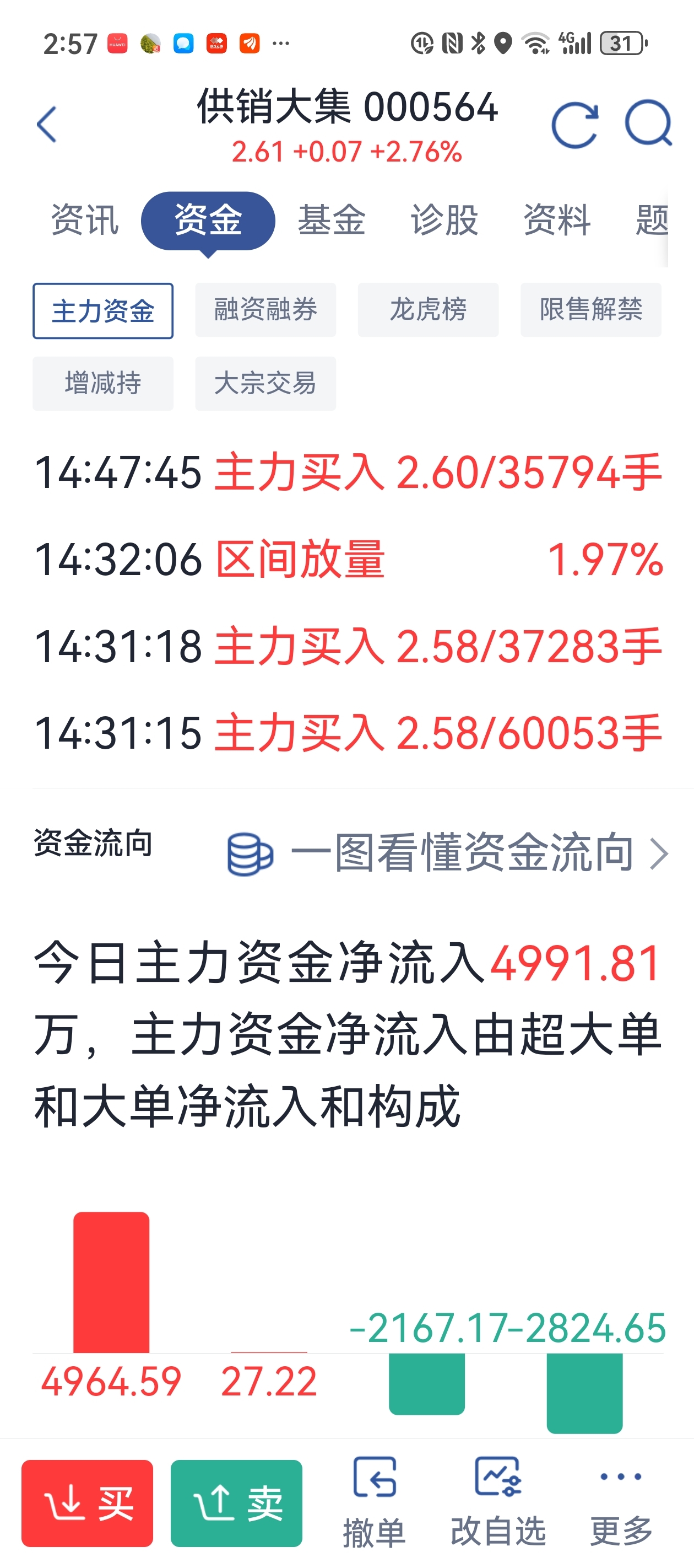 $供销大集(SZ000564)$ 被主力军看到了进来了太早了,我的粉丝们抓紧安排统一大市场。
