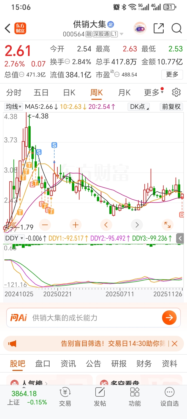 $供销大集(SZ000564)$ 这次但愿没选错,三块再卖
