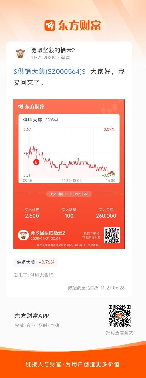 $供销大集(SZ000564)$  大家好,我又回来了。
