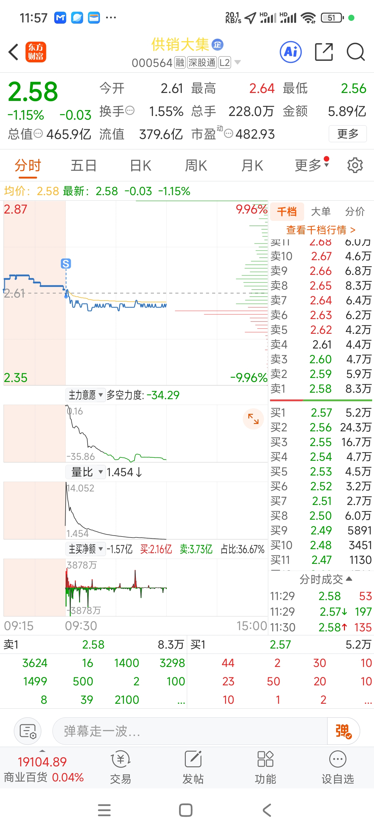 $供销大集(SZ000564)$ 出利好,早上就跑了就知道没好事。