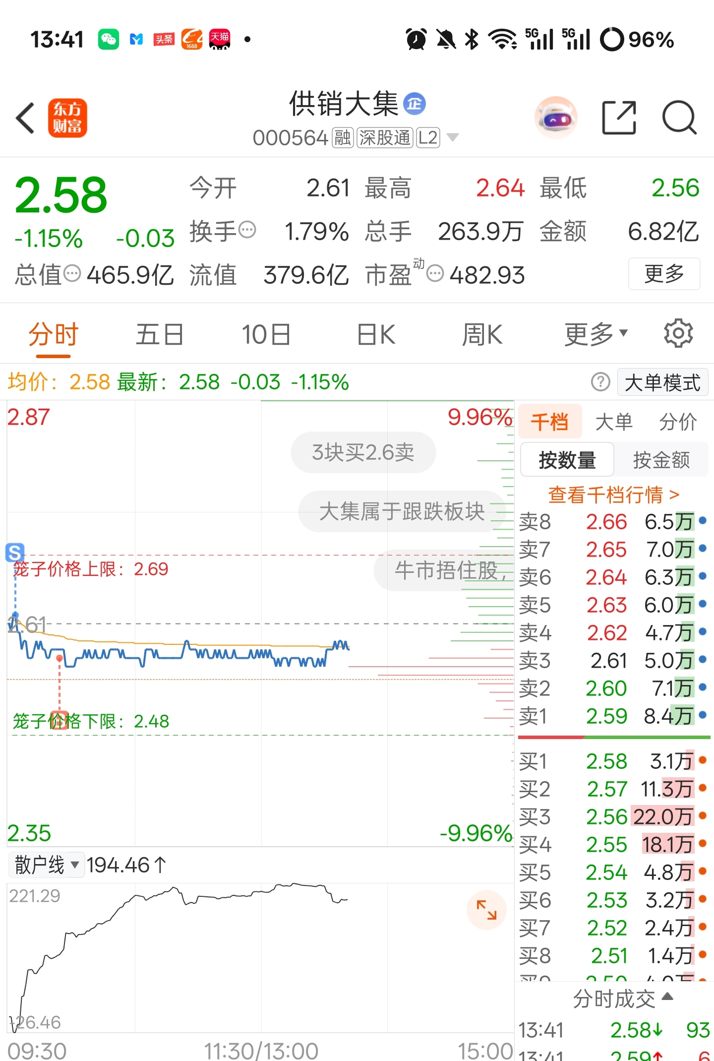 $供销大集(SZ000564)$ 今天的操作已完成,希望收盘翻红吧