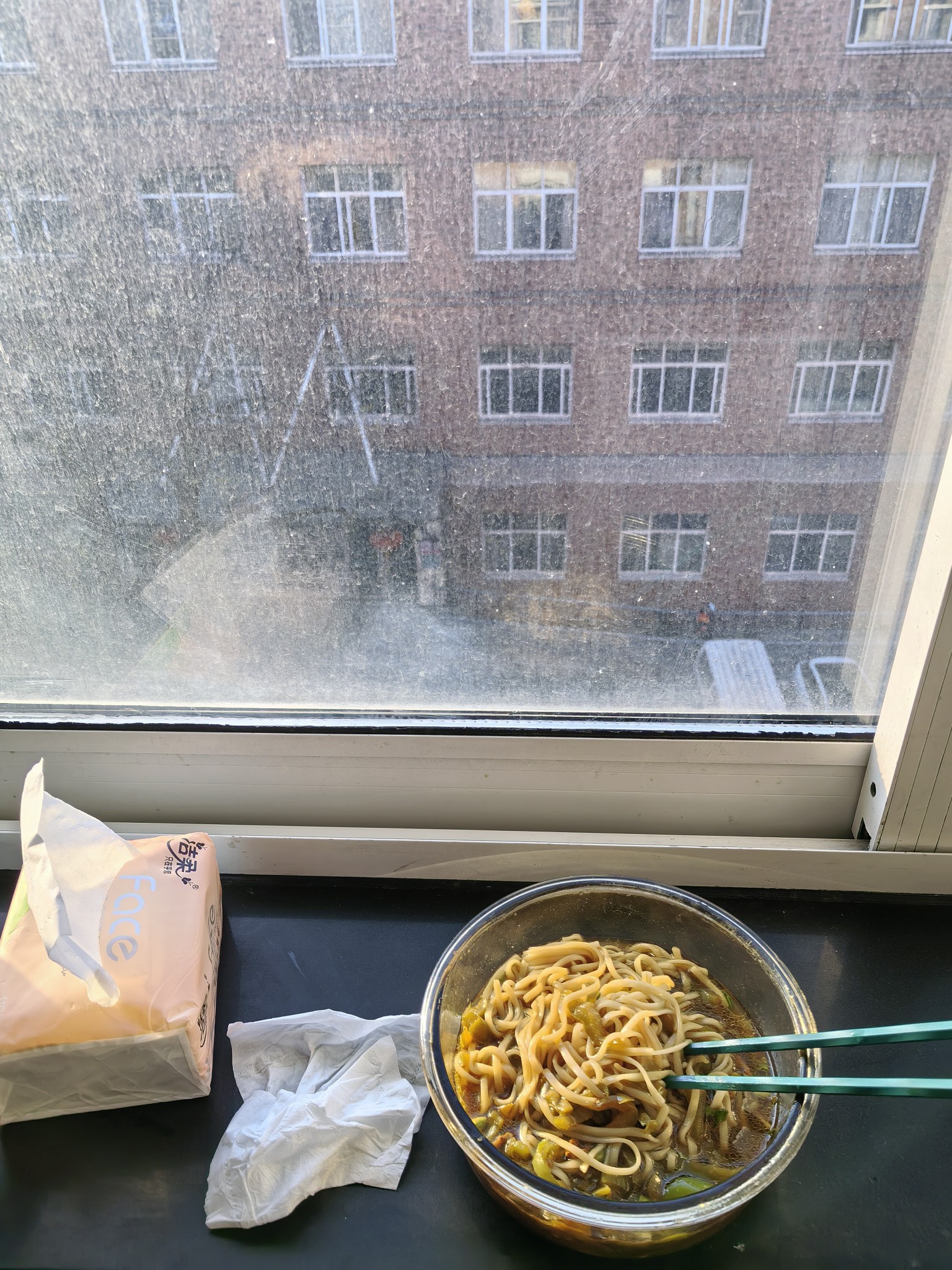 $供销大集(SZ000564)$ 早餐去医院食堂打回来一碗青椒肉丝面,老婆吃了两口,剩下的归我。