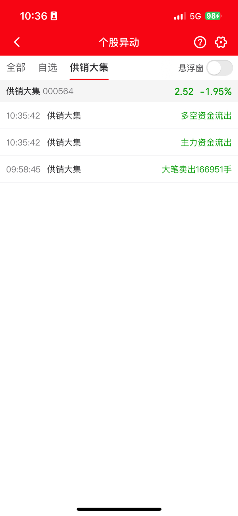 $供销大集(SZ000564)$ 资金已流出