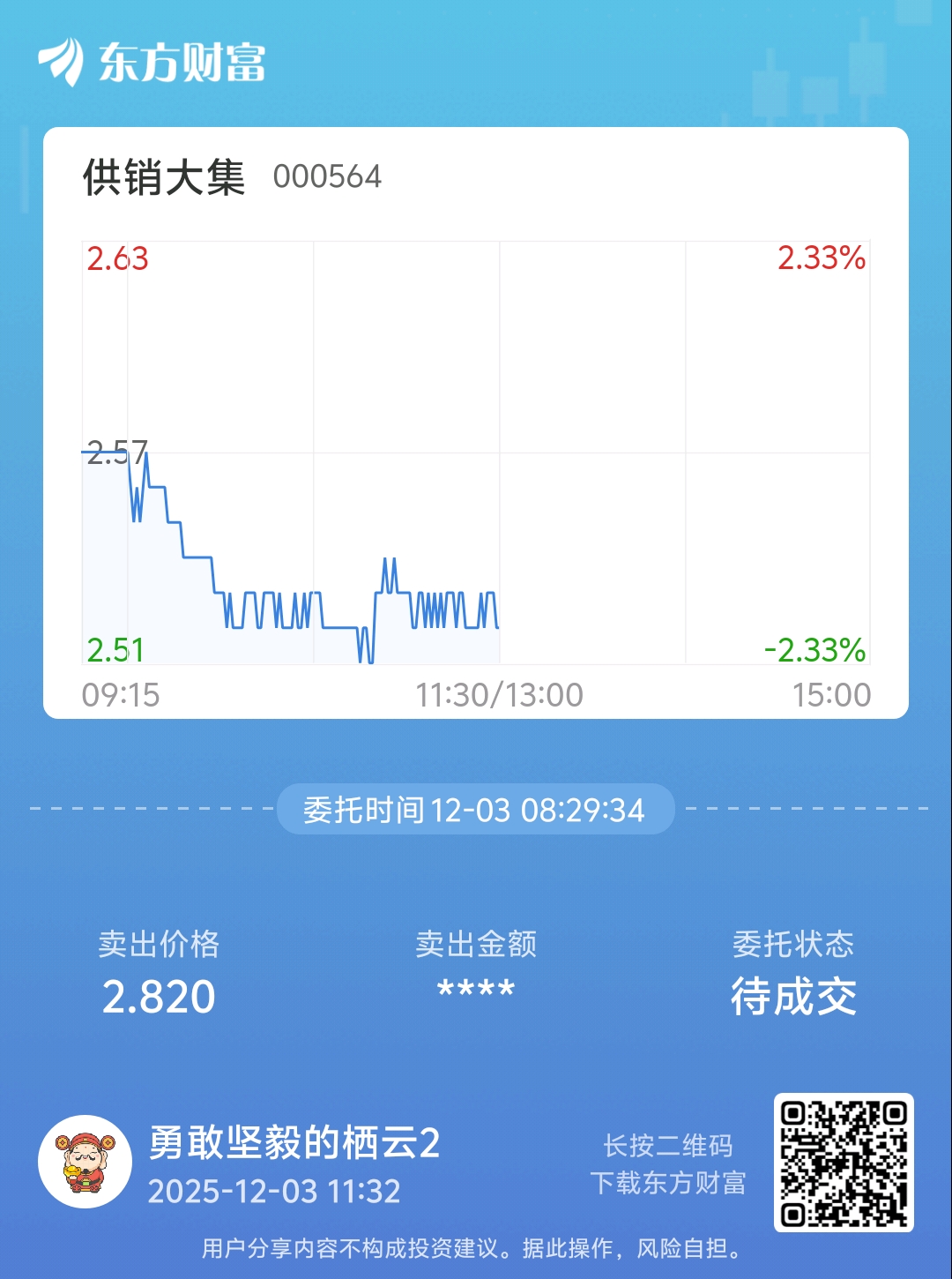 温馨提示: 1.根据《证券法》规定,禁止编造、传播虚假信息或者误导性信息,扰乱证券市场;2.用户在本社区发表的所有资料、言论等仅代表个人观点,与本网站立场无关,不对您构成任何投资建议。用户应基于自己的独立判断,自行决定证券投资并承担相应风险。《东方财富社区管理规定》