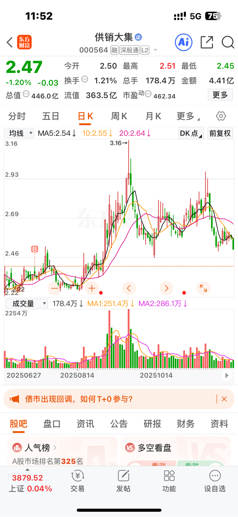$供销大集(SZ000564)$ 持股140天,期间最高获利35个点。目前还有2个点。 能怨谁?