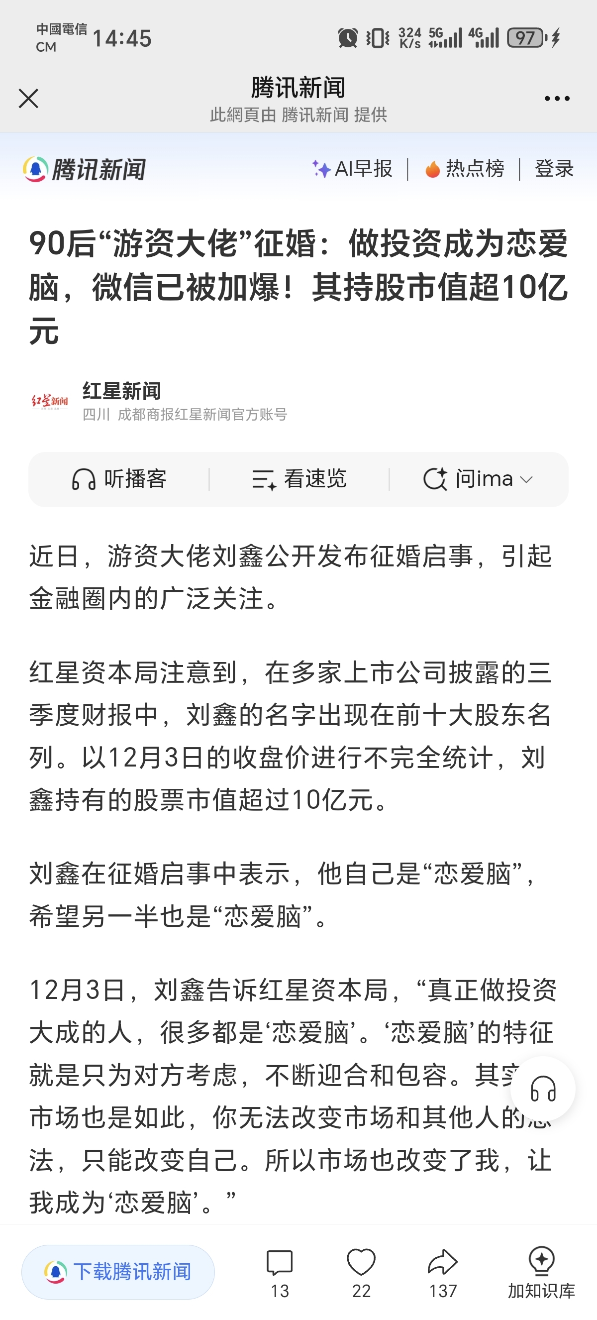 郑重声明:用户在财富号/股吧/博客等社区发表的所有信息(包括但不限于文字、视频、音频、数据及图表)仅代表个人观点,与本网站立场无关,不对您构成任何投资建议,据此操作风险自担。请勿相信代客理财、免费荐股和炒股培训等宣传内容,远离非法证券活动。请勿添加发言用户的手机号码、公众号、微博、微信及QQ等信息,谨防上当受骗!